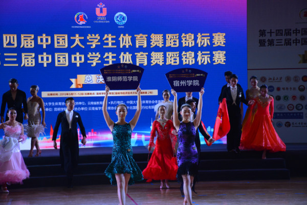 淮师新闻网5月14日电(记者 翟晓阳)5月11日,由中国大学生体育协会主办,中国大学生体育协会体育舞蹈分会执行,昆明学院承办的第十四届中国大学生体育舞蹈锦标赛暨第三届中国中学生体育舞蹈锦标赛(总决赛)在昆明学院隆重拉开帷幕。来自全国各地78所学校的1100余名选手舞动青春,竞技赛场。淮阴师范学院体育舞蹈代表队17名同学共参加本次比赛的23项组别,有19项进入全国高校B组前八,并取得了4金1银1铜以及优秀组织奖的骄人成绩!