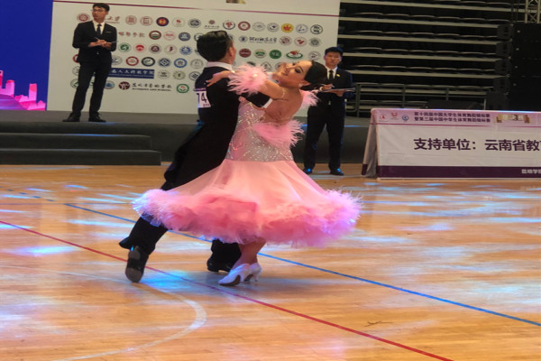 本次大赛是中国大学学生体育舞蹈分会成立以来的第4个年度赛事,也是中国大(中)学生体育舞蹈领域的最高级别赛事。本年度的系列赛事包括四川成都、山东青岛两个全国南北区分赛区的初赛和云南昆明举行的总决赛。总决赛中,来自北京大学、中南大学、郑州大学、中央民族大学、华东政法大学、北京体育大学、云南大学等78所学校千余名选手,分别对127个比赛项目展开激烈角逐。淮师体育舞蹈代表队在领队安博网页版院长李雷,教练李晗、翟晓阳的带领下参加了本次比赛的23项组别,经过多轮次的激烈角逐,淮师代表队夺得4金1银1铜的佳绩,同时学校获得“优秀组织奖”称号。自本次比赛启动以来,淮师安博网页版高度重视,认真组织、精心选拔参赛队员,淮师体育舞蹈队的参赛选手为参加本次比赛坚持高强度训练长达两个月,细心研究技术动作,抓细节,不断突破自我。在竞技过程中,面对人数庞大,竞技水平高的竞争对手,淮师代表队临危不惧以饱满的精神状态,跟着优美旋律,翩翩起舞,征服了在场评委,赢来了阵阵掌声,体现了淮师学生扎实的基本功和良好素养。