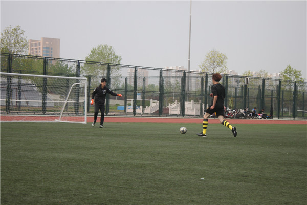 体院新闻网4月11日电(记者 唐甜 赵雷)2019年4月11日中午12点半在足球场,1705班与1703班开展足球周周赛事。