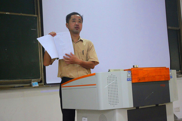 丁书记围绕“道德与人生”这一主题展开讲演,以幽默生动的语言,将生动的实例与具体的规章细则相结合,详细阐释道德的深刻含义。丁书记强调大学生还需做到德才兼备,常修品行。在一个多小时的讲演中,丁书记专心讲解,有理有据。他说,道德在生命中起着重要作用,决定着人的幸福生活和快乐心情。