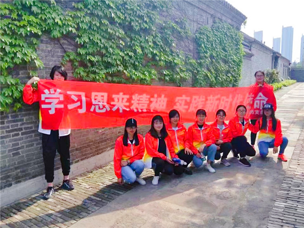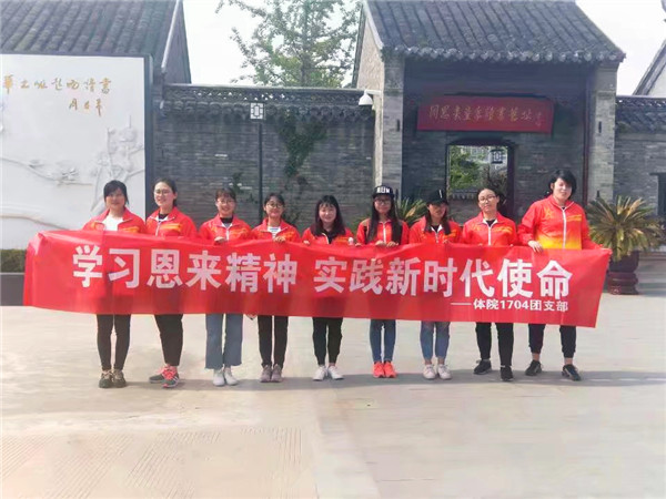 2018426日下午一点半,体院1704团支部开展了以“学习恩来精神,践行新时代使命”为主题参观周恩来读书处旧址的团日活动。在前去的路上她们唱着歌,举起手,唱着“向前进,向前进!革命气势不可阻挡……”在活动中,她们学习、体验、领悟周总理精神,也对周总理平凡而光辉的一生有更为深刻的了解,更加坚定为中华之崛起而读书的信念,增强责任感、使命感、和荣誉感。
