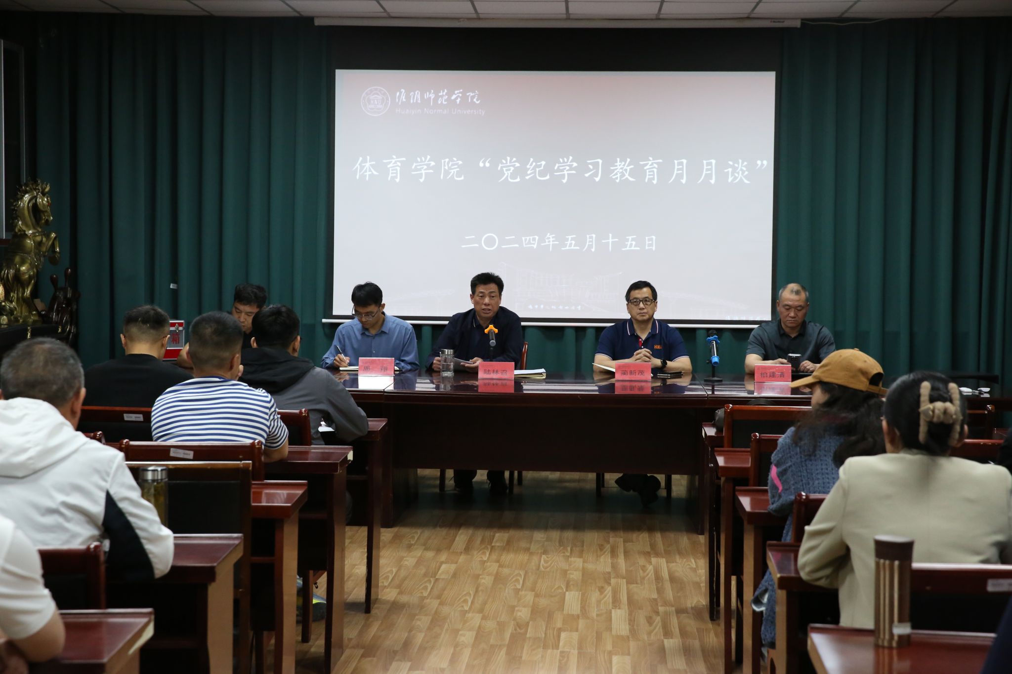 为扎实推动党纪学习教育走深走实,5月15日下午,安博网页版党委举行“党纪学习教育月月谈”活动,院领导班子、全体党员教师参加活动。