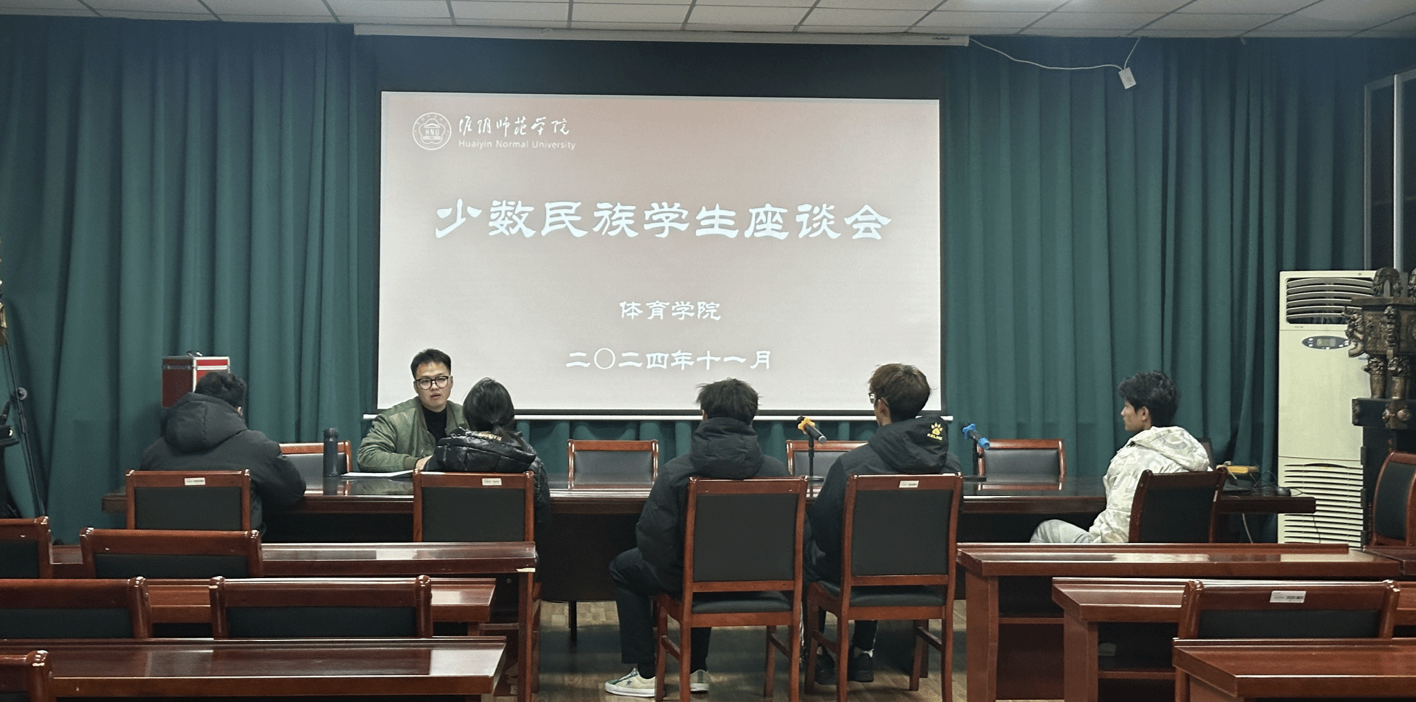 为深入学习贯彻党的二十届三中全会精神及中央民族工作会议精神,贯彻落实习近平总书记关于加强和改进民族工作的重要思想,铸牢中华民族共同体意识,深化民族团结进步教育。安博网页版11月27日在会议室召开少数民族座谈会,辅导员颜超龙以及少数民族学生参会。