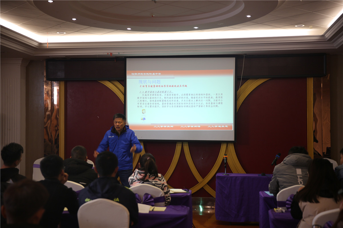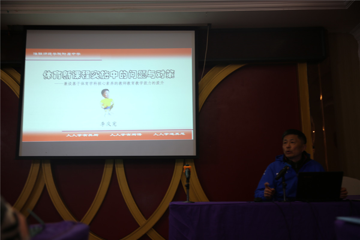 开班仪式后由江苏省体育特级教师季庆宪老师做关于《体育新课程实施中的问题与对策》的专题讲座。