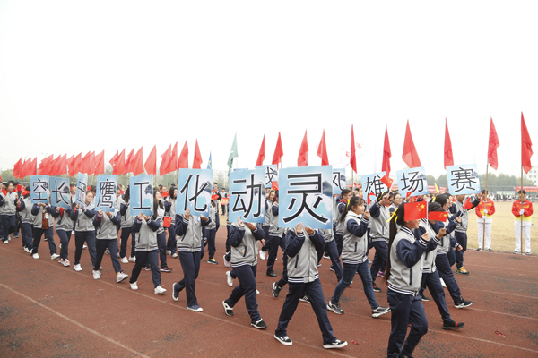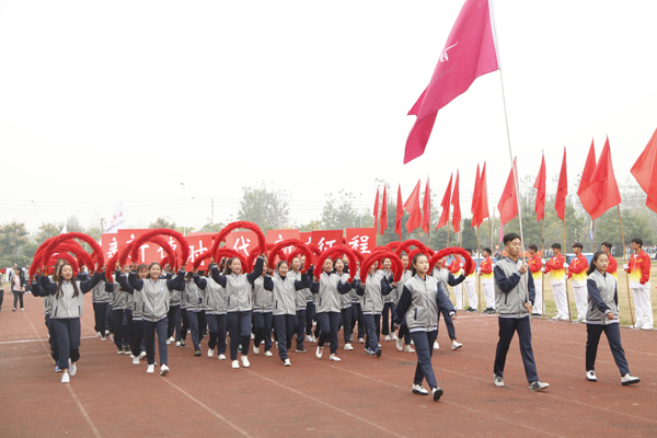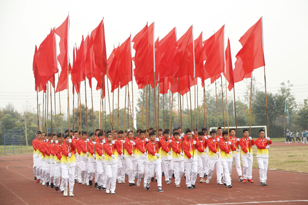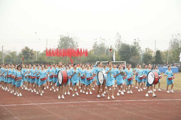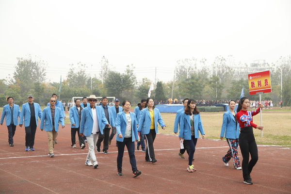 在雄壮的运动员进行曲中,国旗、校旗、会徽、军鼓乐团、铜管乐团、彩旗、裁判员等方阵依次入场。来自研究生院及17个二级学院的运动员代表方阵迈着矫健的步伐,朝气蓬勃地走过主席台。