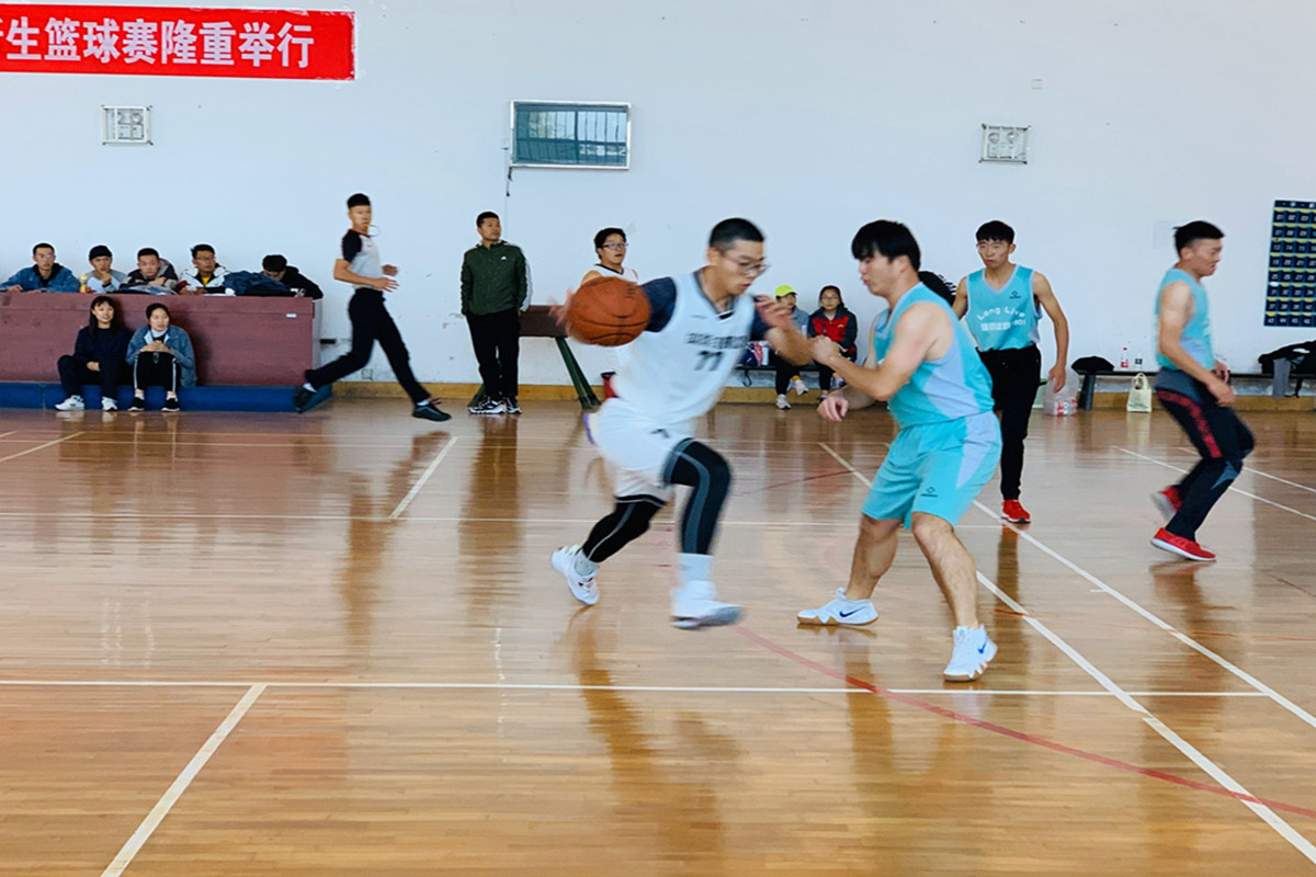 双方队员都竭尽所能,向对方的篮筐发起一轮又一轮的进攻。东场由1901对战1902,1901班以默契的传球最终以43:40的比分胜出。西场由1801对战1903,1801经过调整战术,全力打好配合,快攻猛打,充沛应用弹跳力优势稳住篮板,逐渐追赶上对手。以38:36的比分战胜1903班。