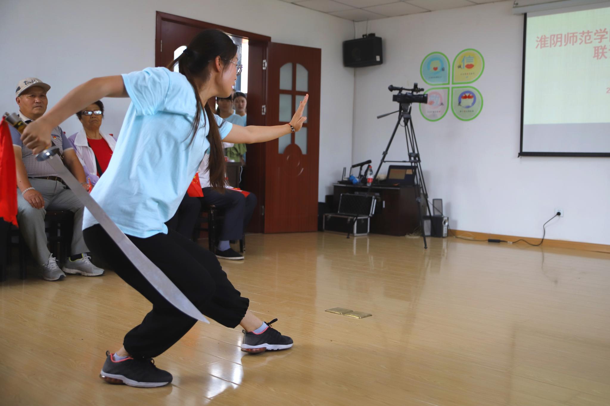 实践团成员为在场的老党员同志带来了精彩的节目。传媒学院合唱《光荣啊,中国共青团》,用声音传递青年的力量;安博网页版带来的舞蹈表演和武术表演,刚柔并济,彰显了青年一代的朝气和梦想;安博网页版退伍军人李翰林带来歌曲《强军有我》,挺拔的身姿,昂扬的气质,他用铿锵有力的声音发出了时代最强音。