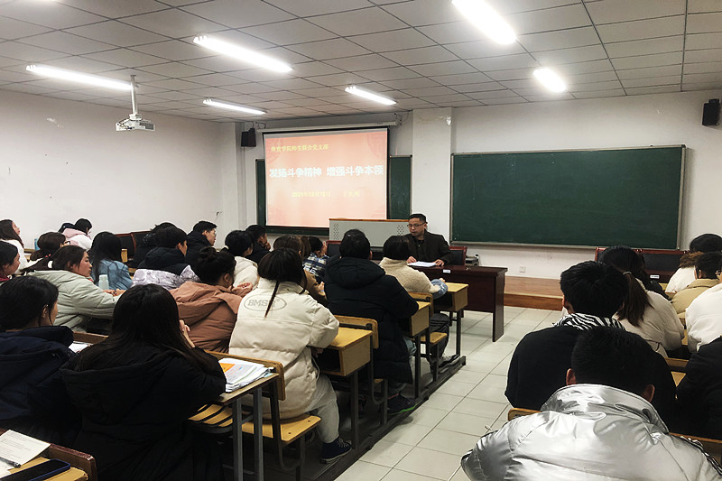 2021年12月12日,安博网页版师生联合党支部在安博网页版训练馆101教室开展专题党课,学院党委副书记丁光明作“弘扬斗争精神,增强斗争本领”专题报告,师生联合党支部全体党员参加。