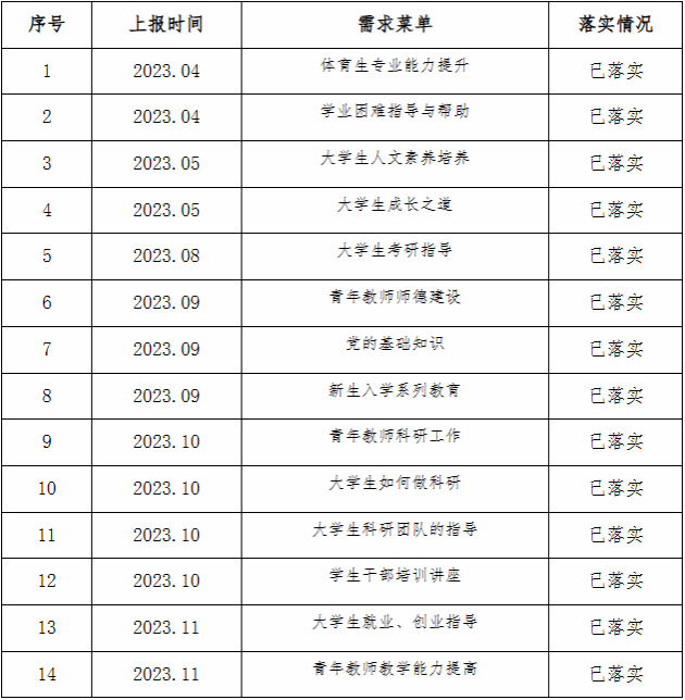 青年师生“需求菜单”