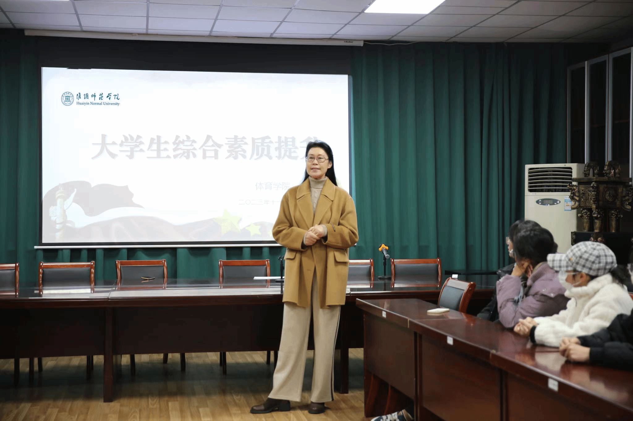 为提升同学们的综合能力,帮助同学们解答有关专业训练、学习以及大学规划等问题。11月20日淮阴师范学院安博网页版在体院大会议室开展了大学生综合能力提升专题讲座。讲座由关工委成员傅建霞教授主讲,辅导员颜超龙主持,全体女生学生干部参与此次讲座。