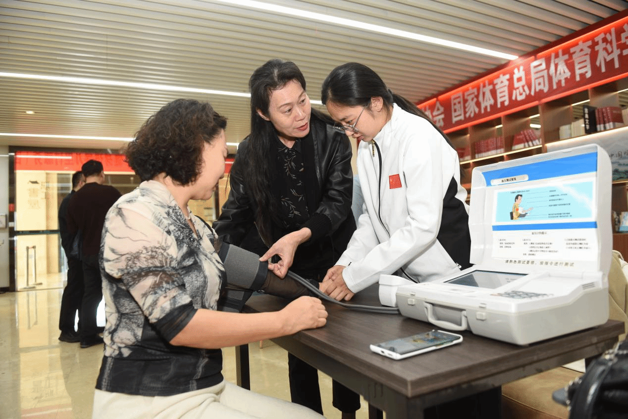 傅建霞老师现场解答被监测人员的疑惑,同时扩大了学生的知识储备,进一步提升了学生关于体质监测的相关理论水平。并指导学生如何正确使用体质监测仪器,更精确、更高效、更专业的完成体质监测任务。